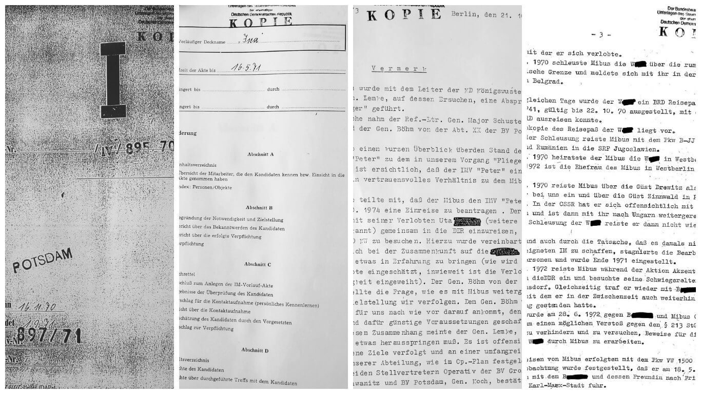 Photo caption: Pages in the STASI file of Peter Mibus; credit: personal documents Photo caption: Pages in the STASI file of Peter Mibus; credit: personal documents Photo caption: Pages in the STASI file of Peter Mibus; credit: personal documents